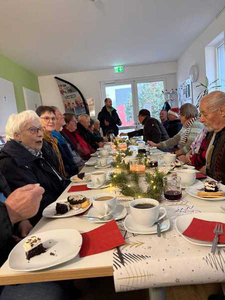 Am Sonntag, dem 3. Dezember 2023, fand unser 1. Adventskaffee der Siedlergemeinschaft Magdeburg-Nordwest statt. 25 Siedlerinnen und Siedler sowie 3 Kinder fanden den Weg in den offenen Treff. Sehr angetan von der festlich geschmückten Tafel ließen sich alle den Kaffee und die vielen verschiedenen selbstgebackenen Kuchen und Plätzchen sowie später auch den Glühwein schmecken. Gemeinsam stimmten wir das Lied "In der Weihnachtsbäckerei" an, was vor allem von den Kleinen mit großer Stimme mitgesungen wurde. Dann gab es für alle eine liebevoll gepackte Weihnachtstüte mit vielen schönen Leckereien, die bei den Siedlerinnen und Siedler sehr gut ankam. All diejenigen, die nicht dabei sein konnten, werden ihre Weihnachtstüten von ihren Obleuten überreicht bekommen.