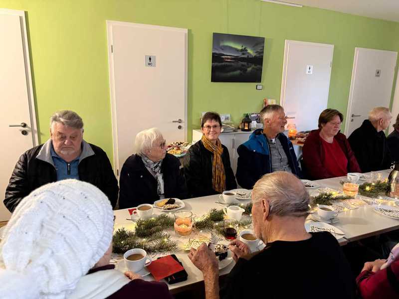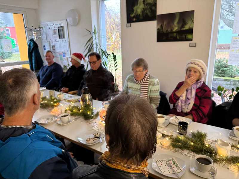 Am 1. Advent 2025 trafen wir uns zum 3. Mal zum Adventskaffee der Siedlergemeinschaft im Offenen Treff. Trotz der Umstände, dass der Saal nicht nutzbar war, sind wir im Vorraum ein bisschen weiter zusammen gerückt und haben uns bei Kaffee, Kuchen, Glühwein und Weihnachtsgebäck an einer weihnachtlich geschmückten Tafel sehr wohl gefühlt. Auch ein Feuerkorb im Außenbereich hat für eine wohlige Atmosphäre gesorgt.